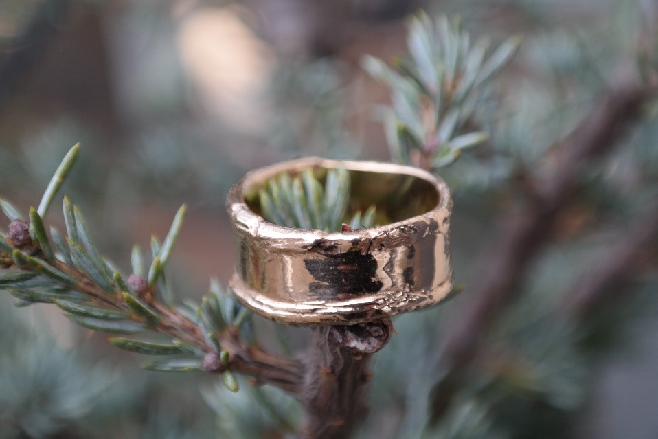 Design: Bred ring med rå, organisk struktur – maskulin og tidløs