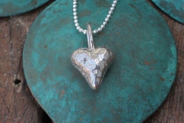 Asta er et håndlavet hjertevedhæng i 925 sterlingsølv med et bevidst råt og ujævnt udtryk. Det solide, organiske design giver smykket en autentisk følelse, som om det er formet direkte i hånden med hjertet som formgiver.